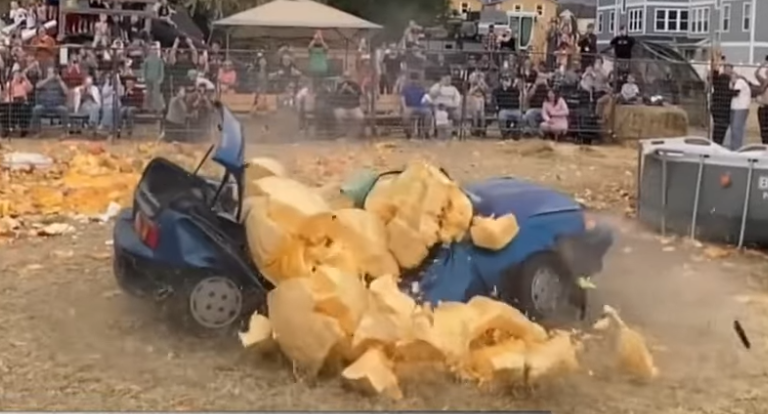 Utah Man Drops 1,917 Pound Pumpkin on His Geo Metro