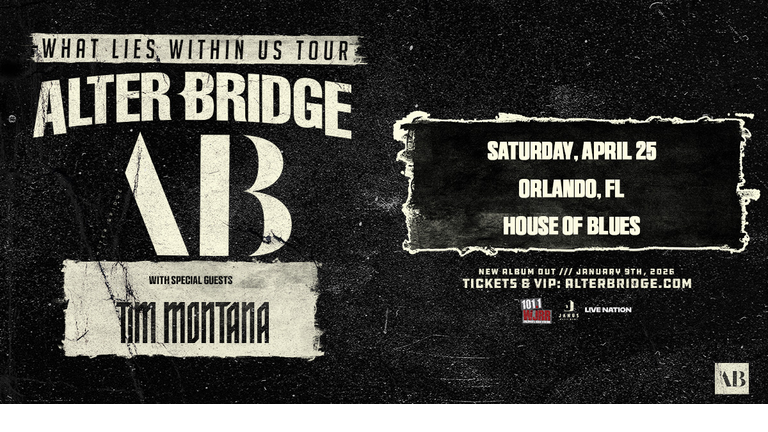 Alter Bridge - What Lies Within Tour presented by 101.1 WJRR With special guests Tim Montana Saturday, April 25 | House of Blues Orlando | 6:00PM Purchase tickets HERE