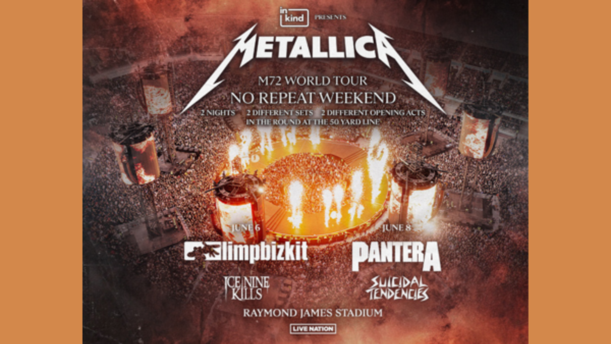 Metallica M72 World Tour Metallica M72 World Tour! No Repeat Weekend. Playing two shows at Raymond James Stadium June 6th and June 8th! Tickets on-sale September 27th at Livenation.com