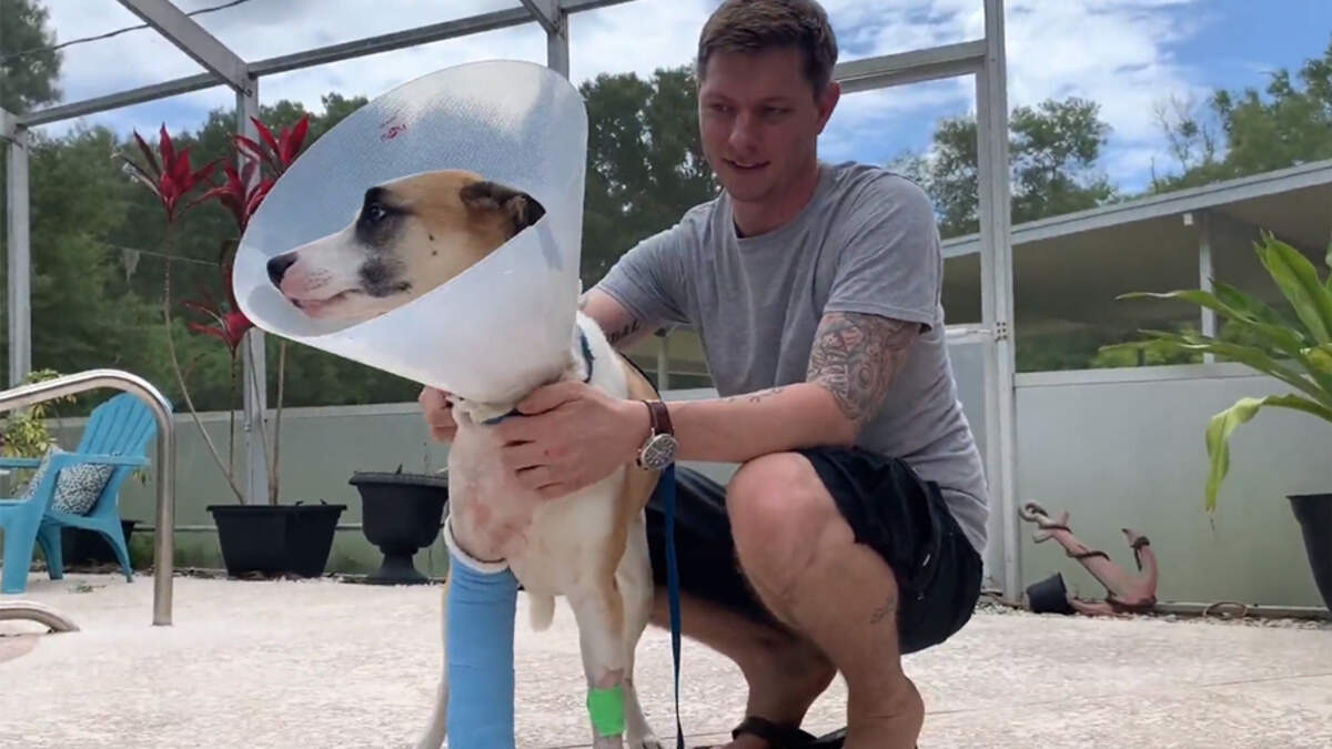 Tweddale realized he wasn't going to win a tug-of-war match against a 13-foot alligator, so he jumped into the water and started to hit its head. Eventually, the gator gave up and let go of Loki. Tweddale pulled the injured dog out of the water and rushed him to an animal hospital.