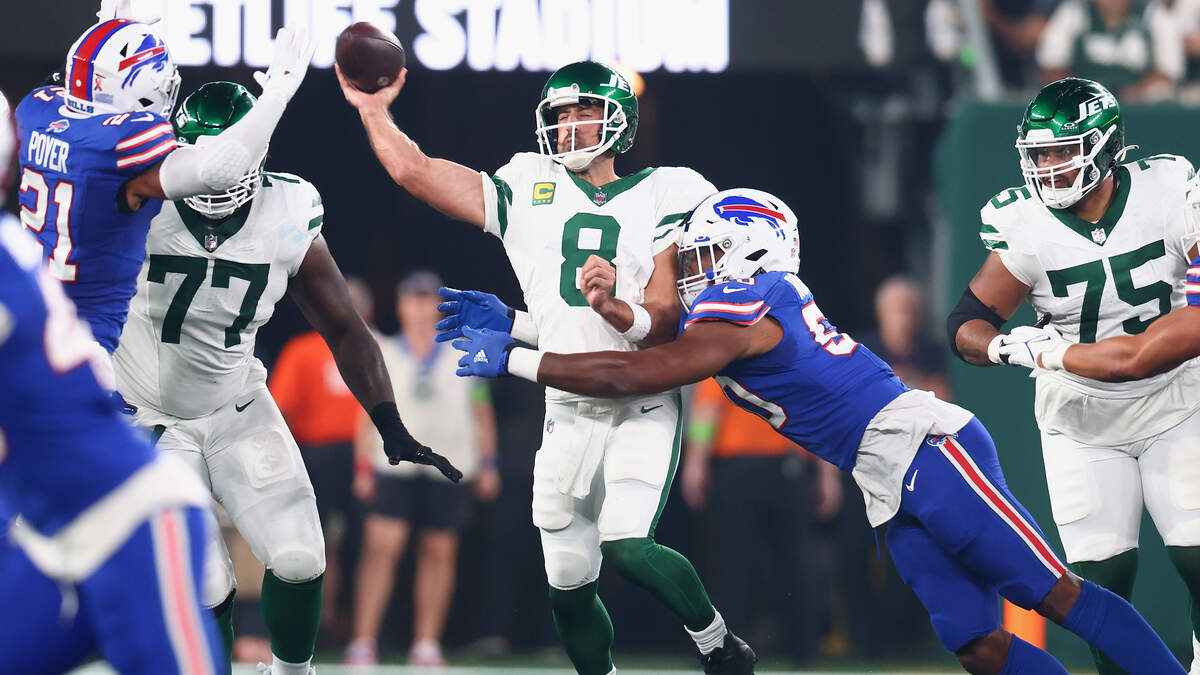 Jets prevailed in OT against Bills 22-16, Rodgers will be further evaluated today Photo: Mike Stobe / Getty Images Sport / Getty Images