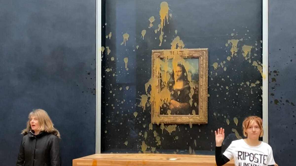 The 'protest' was in the name of the right to a 'healthy and sustainable diet. What a waste of food... Photo: DAVID CANTINIAUX / AFP / Getty Images