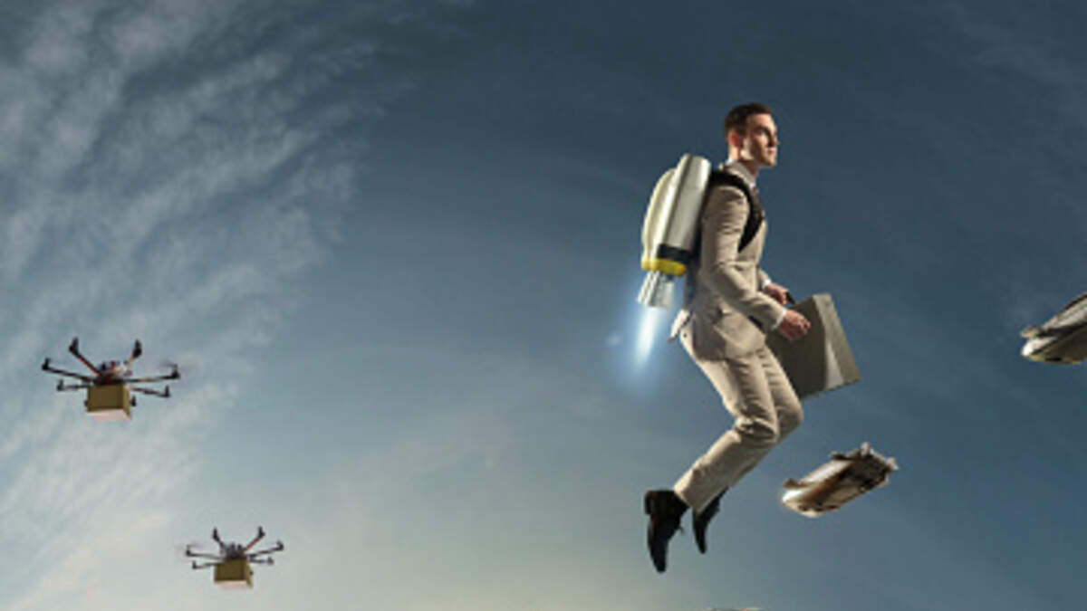 Check out the first ever footage of real jetpacks. This is not a drill! Our childhood dreams have come true! Photo: Getty Images